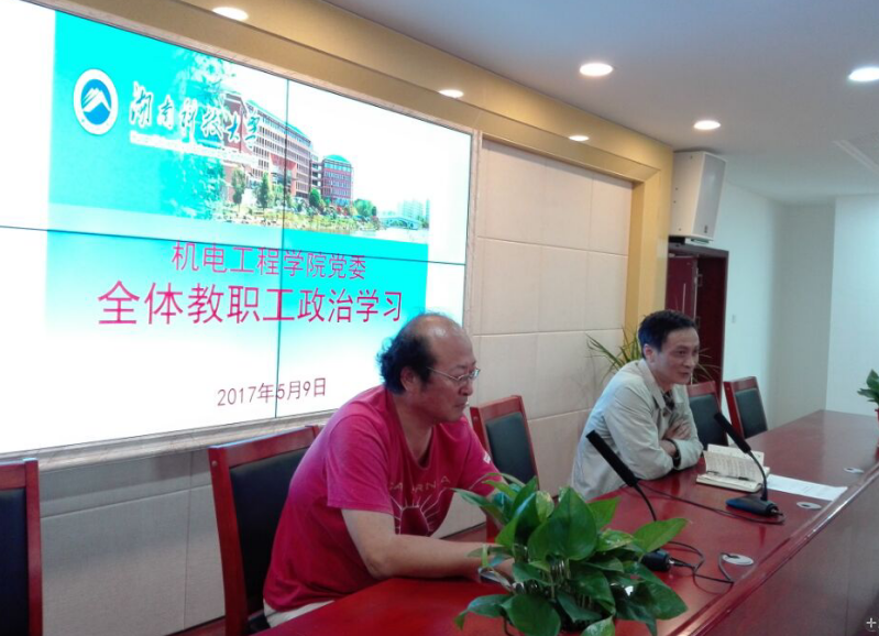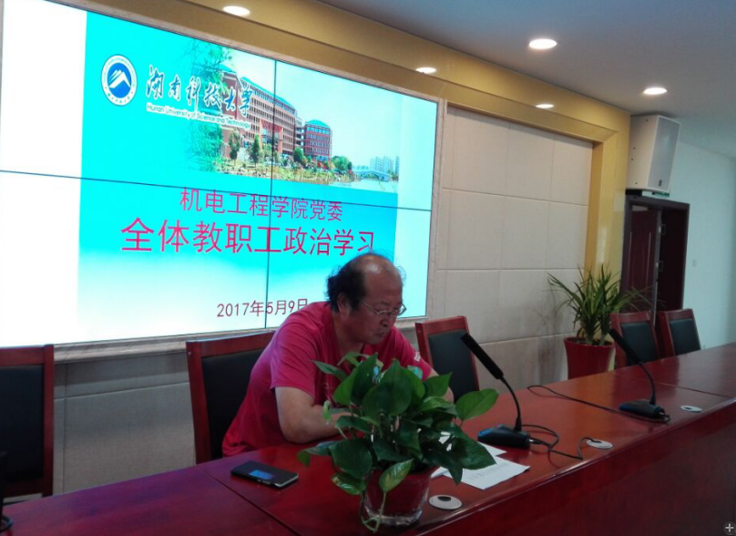 2017年5月9日下午,yl6809永利召开全院教职工大会,深入学习习近平总书记在全国高校思想政治工作会议上的重要讲话精神。yl6809永利、机械设备健康维护湖南省重点实验室、先进矿山装备教育部工程研究中心、海洋矿产资源探采装备与安全技术国家地方联合工程实验室机械重点实验室、智能制造研究院全体教职工参加了学习,学院党委书记郭迎福主持会议。